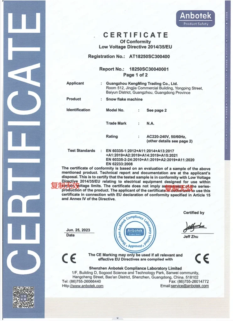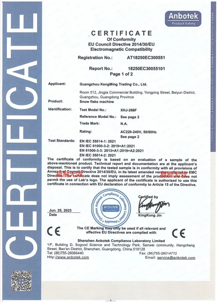 ➡️ JM 雪花冰机证书 - 点击展开/收起